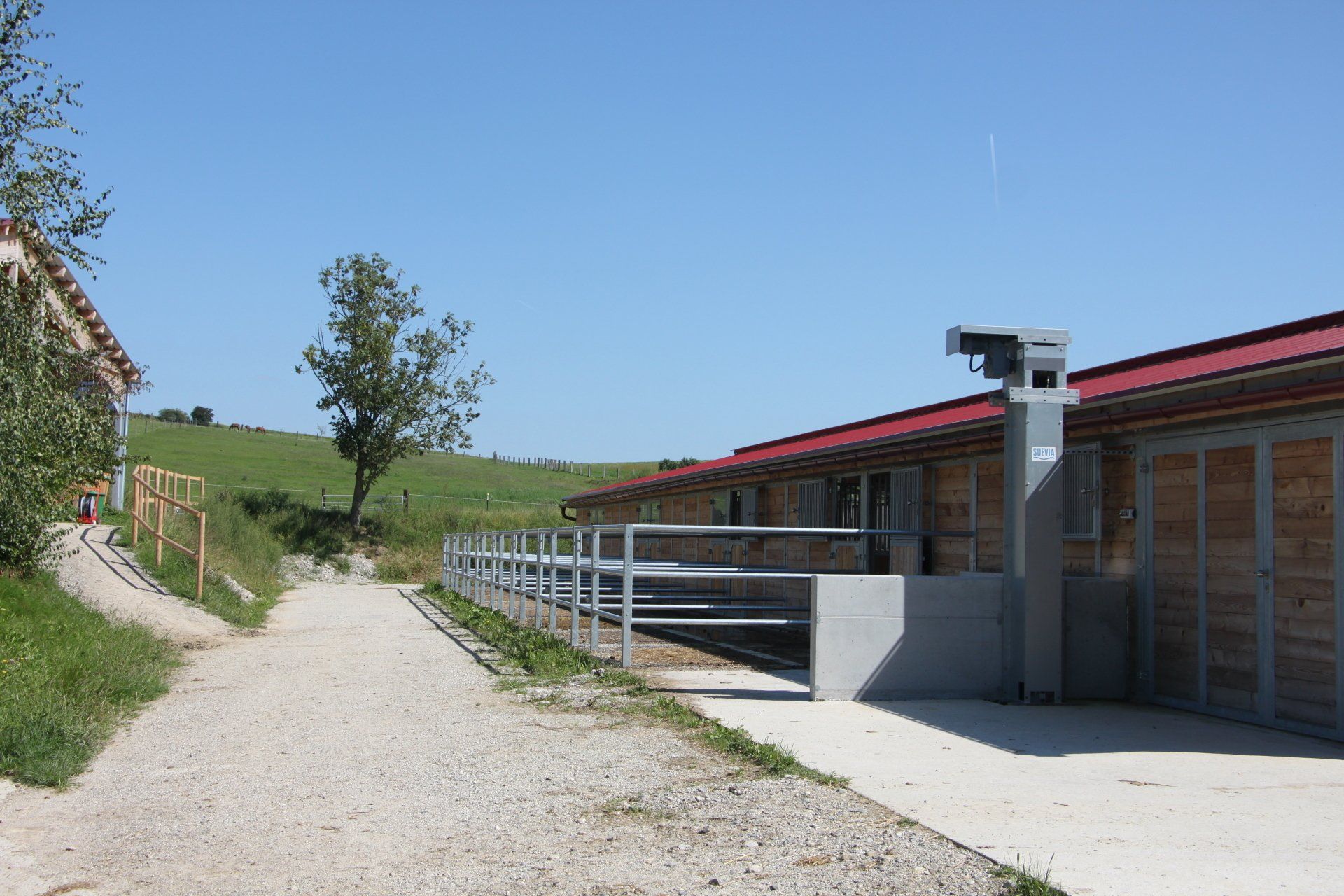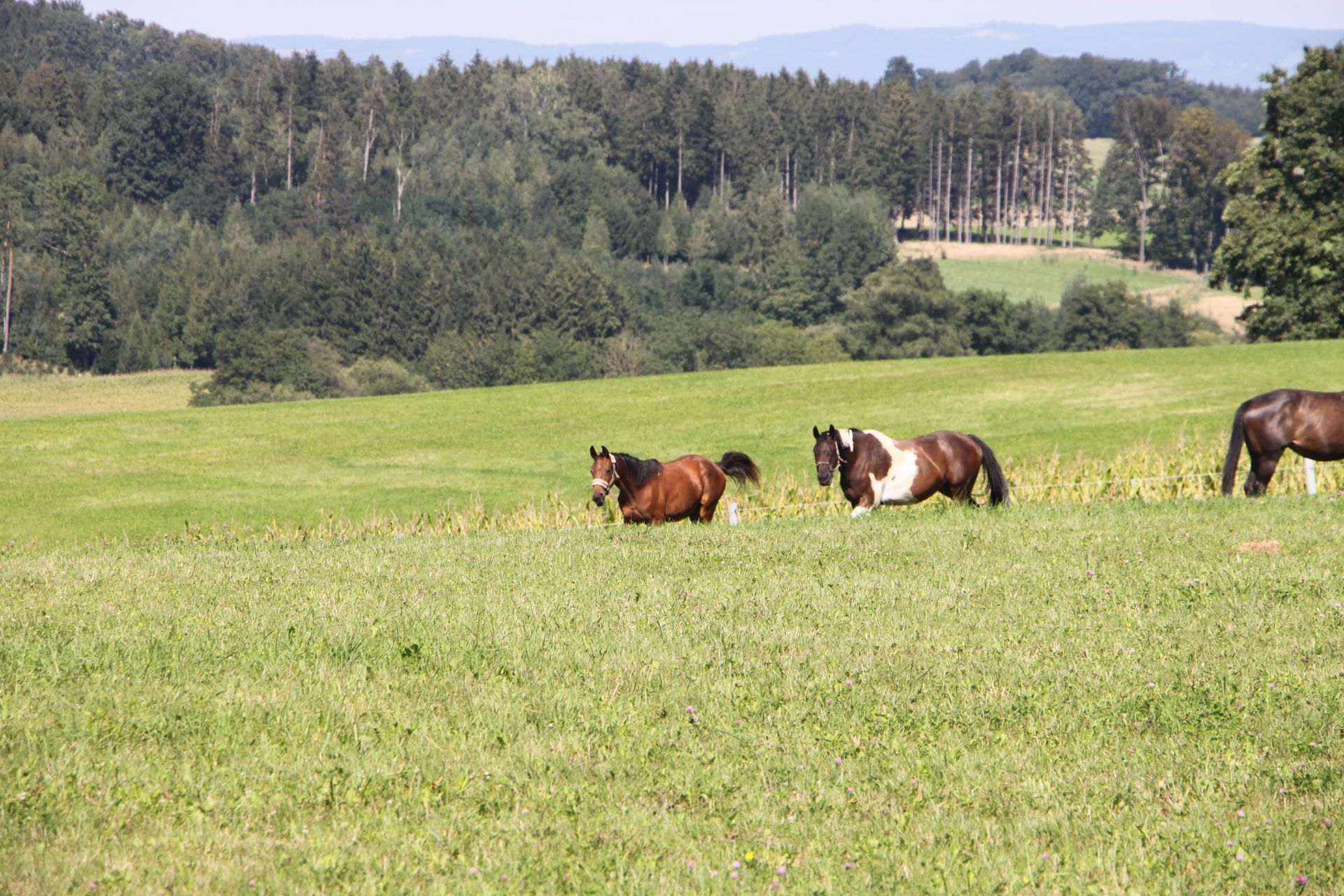 Neben der beheizten Sattelkammer und dem gemütlichen Reiterstüberl wartet der 20 × 60 Meter große Reitplatz inklusive Allwetter-Dressurviereck. Weit abseits von größeren befahrenen Straßen können sich die Pferde auf großzügigen Koppeln und Weiden austoben.